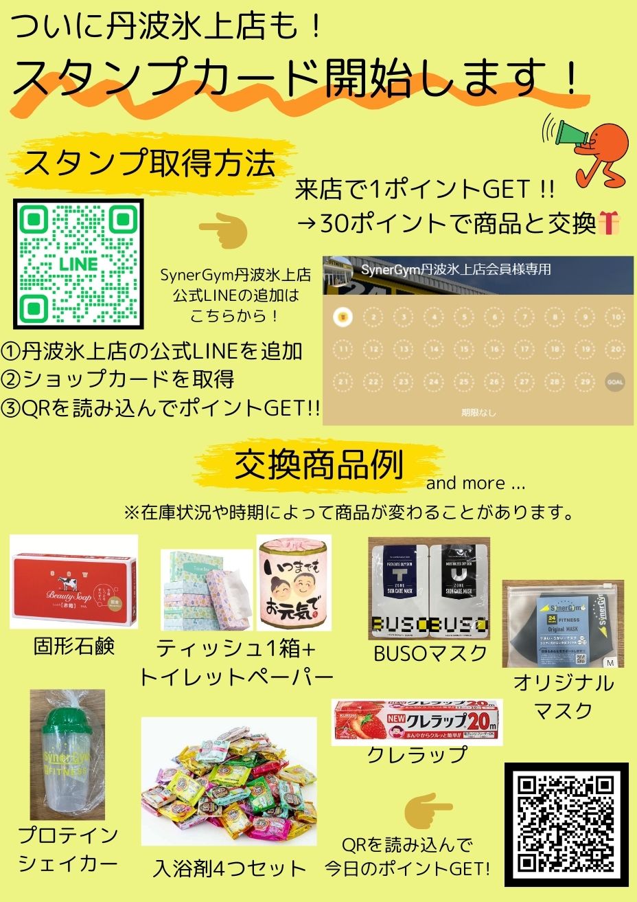2025.06.02 🏋️シナジム10周年感謝セール🏋️ #お知らせ #ブログ #丹波氷上店 2024.10.30 🌟SynerGym決算セール開催🌟 #お知らせ #ブログ #丹波氷上店 2024.10.22 ガス機器交換に関するお知らせ #お知らせ #ブログ #丹波氷上店 2024.07.27 サプリメントサーバーに新フレーバー登場!! #お知らせ #丹波氷上店 2024.07.20 7月後半~8月キャンペーン #お知らせ #丹波氷上店 2024.06.01 トレーニングアプリ始まりました✨ #お知らせ #丹波氷上店 2024.03.12 キャンペーンやイベントについて #お知らせ #丹波氷上店 2024.02.06 スタンプカードやってます! #お知らせ #丹波氷上店 2023.12.26 【再告知】年末年始休業期間について #お知らせ #ブログ #丹波氷上店 2023.12.13 無料カウンセリングって何? #お知らせ #ブログ #丹波氷上店 2023.12.08 美しい姿勢を手に入れよう♪ #お知らせ #ブログ #丹波氷上店 2023.12.06 第一回ランニング大賞決定戦!参加者募集☆ #お知らせ #ブログ #丹波氷上店
